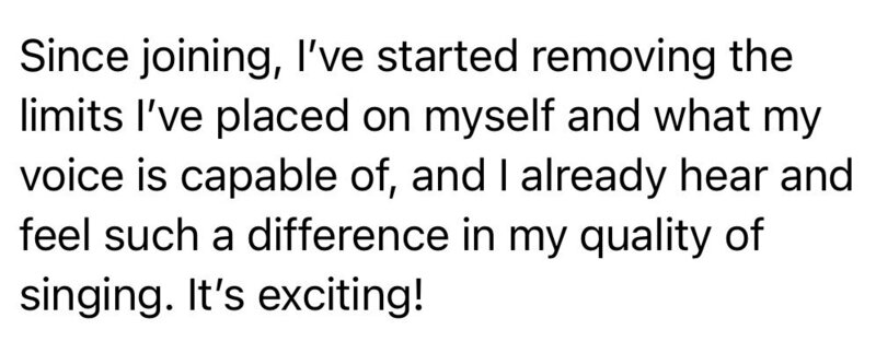 Most singing programs stop at vocal technique. Here, you’ll get mindset and confidence tools and expert technique so your voice and self-belief grow together.